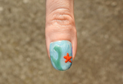 En las estrellas de mar utilicé un punzón antes de volver a secar los esmaltes con la lámpara, para hacer marcas que recuerdan a la textura que tienen en realidad.